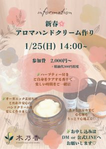 新春🌸アロマハンドクリーム作り のご案内